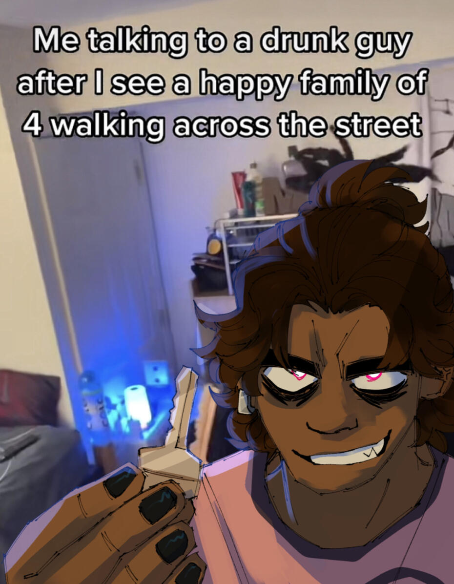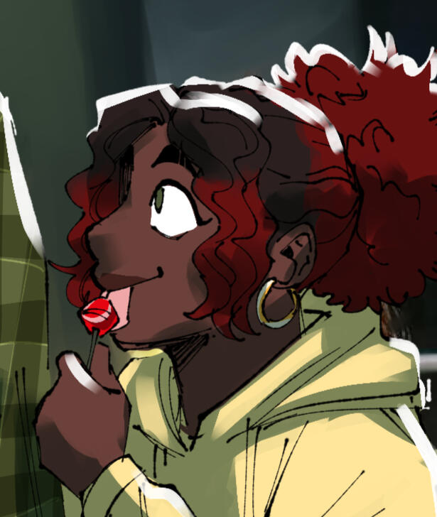 The other braincell owner in the gang. She's a quick-witted, upbeat artist who always keeps busy. While in many friend groups, she makes sure to have time for Marco and his lil posse. Oil painting is the best form of art and she stands by that.